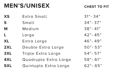 Size chart describes the chest to fit